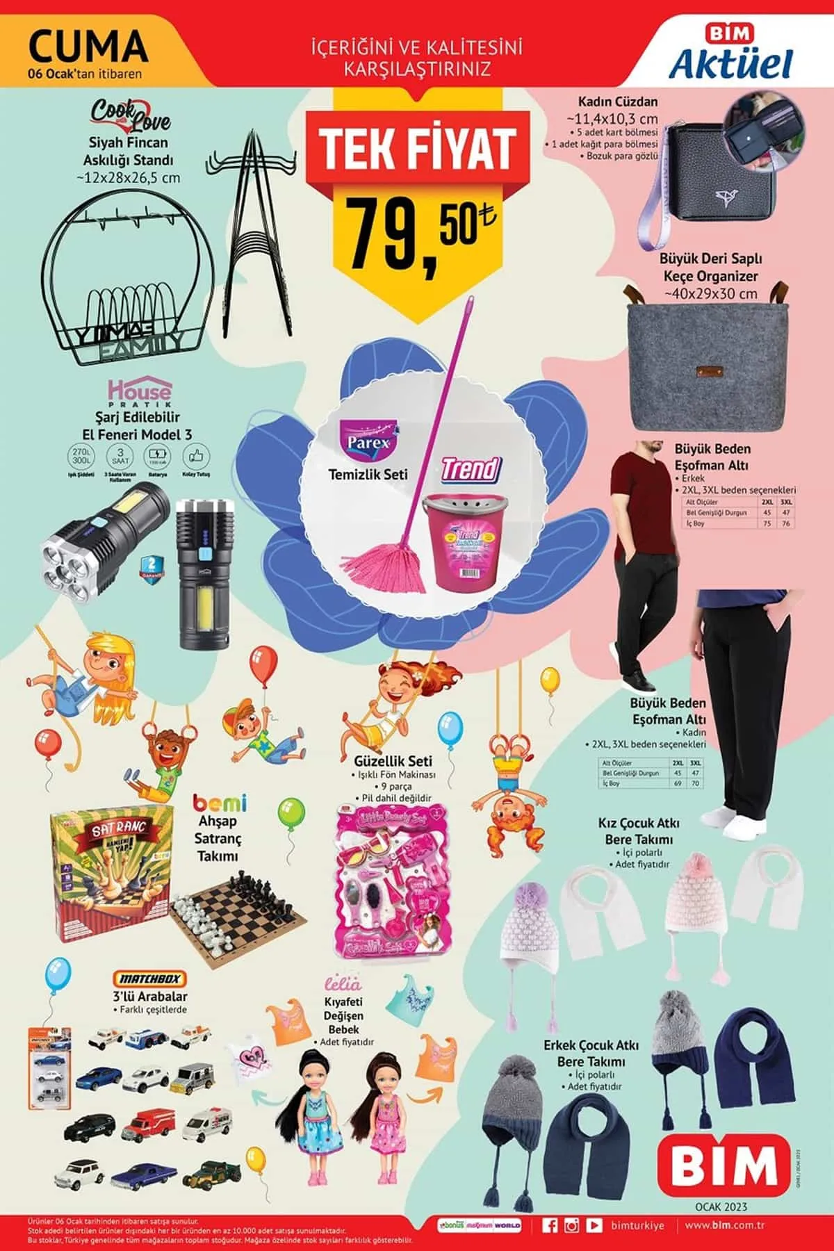 Siyah Fincan Askılığı Standı 79,50 TL. Kadın Cüzdan 79,50 TL. Büyük Deri Saplı Keçe Organizer 79,50 TL. Şarj Edilebilir El Feneri 79,50 TL. Parex Temizlik Seti 79,50 TL. Kadın-Erkek Büyük Beden Eşofman Altı 79,50 TL. Bemi Ahşap Satranç Takımı 79,50 TL. Güzellik Seti 79,50 TL. Kız-Erkek Çocuk Atkı Bere Takımı 79,50 TL. Matchbox 3’lü Arabalar 79,50 TL. Lelia Kıyafeti Değişen Bebek 79,50 TL. Bimde Bu Hafta kalitesi ve içeriği ile göz dolduran fırsat ürünleri devamında; Borcam Kare Kase 49,50 TL. Paşabahçe Yağlık-Sirkelik 49,50 TL. Paşabahçe Linka 3’lü Su Bardağı 49,50 TL. Koltuk Yanı Keçe Organizer 49,50 TL. Benante Dikdörtgen Oval Tabak 49,50 TL. Kase Hazneli Rende 49,50 TL. Deri Saplı Keçe Organizer 49,50 TL. İkili Havlu Set 49,50 TL. Kutulu Üçlü Kanaviçe Kurulama Bezi 49,50 TL. Piccolo Mondi Sürtmeli Yarış Arabası 49,50 TL. Tahmin Etme Oyunu Bil Bakalım Kimim 49,50 TL. Bu Cuma Bimde kataloglarının en yenisi olan 6 Ocak Bim aktüel ürünler kataloğunun kampanyalı züccaciye ve mutfak ürünleri dönemsel beklentilerinize ve ihtiyaçlarınıza göre özenle seçilmişler. Çiftlik Dünyası Hayvanlı Traktör 49,50 TL. Polosmart 3in1 Şarj Kablosu 49,50 TL. Sepette Hamburger ve Pasta Seti 49,50 TL. Oyun Hamuru Seti 49,50 TL. Borcam Sufle Kabı-Kase 19,50 TL. Dekoratif 6’lı Çay Tabağı Seti 19,50 TL. Microfiber Bulaşık Altlığı 19,50 TL. Dofi Wellsoft Ev Patiği 19,50 TL. Basmalı Değirmen Tuzluk 19,50 TL. Limon Press 19,50 TL. Silikon Hazneli Yağlık 19,50 TL. Kaşıklı Cam Baharatlık 19,50 TL. Termal Peluş Tabanlık 19,50 TL. Turşuluk – Zeytinlık 19,50 TL. Mısır Kovalı Pipet Bardak 19,50 TL. Hobby Life 3 Bölmeli Organizer Saklama Kabı 19,50 TL. Sürahi 1,75 Litre 19,50 TL. Tek Fiyat Plastik Ürünler 19,50 TL.
