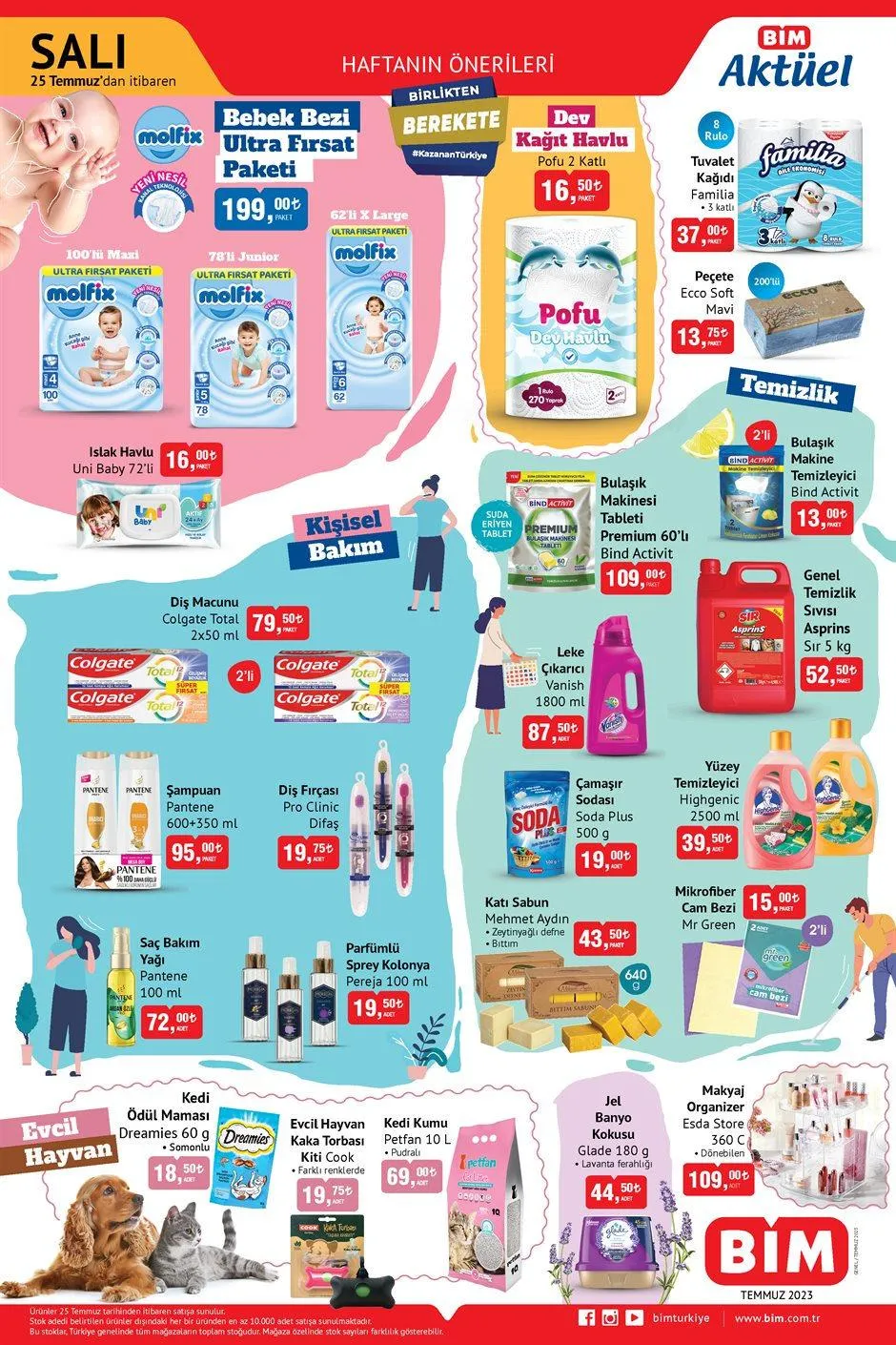 BİM Haftanın Önerileri kataloğu yayınlandı. BİM Market mağazalarında 25 Temmuz 2023 tarihinden itibaren süt ürünleri, atıştırmalık ürünler, içecek çeşitleri ve kişisel bakım ürünleri indirimli fiyatlarla raflarda yerini alacak.
