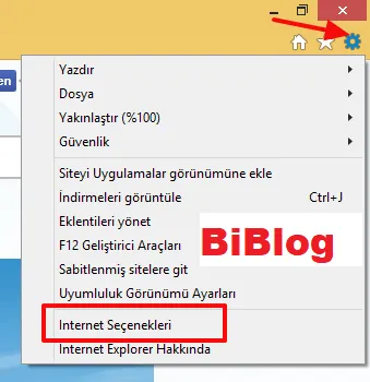 Explorer için de mantık aynı. Tarayıcınıza giriş yapın ve sağ üst kısımda bulunan ayarlar sekmesini tıklayın.